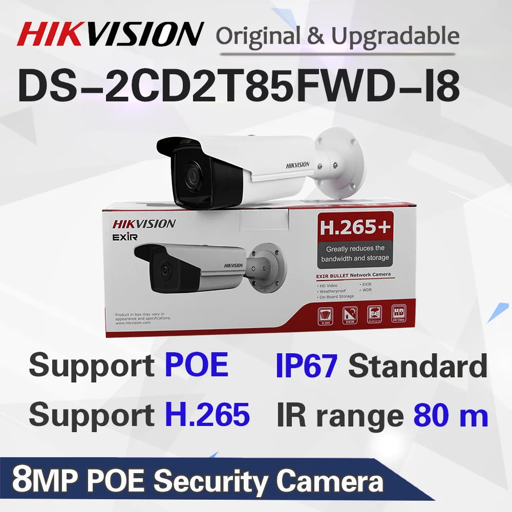 Hikvision 8MP 4K Bullet IP Camera PoE Outdoor Night Vision IR Distance 80M CCTV Security Surveillan