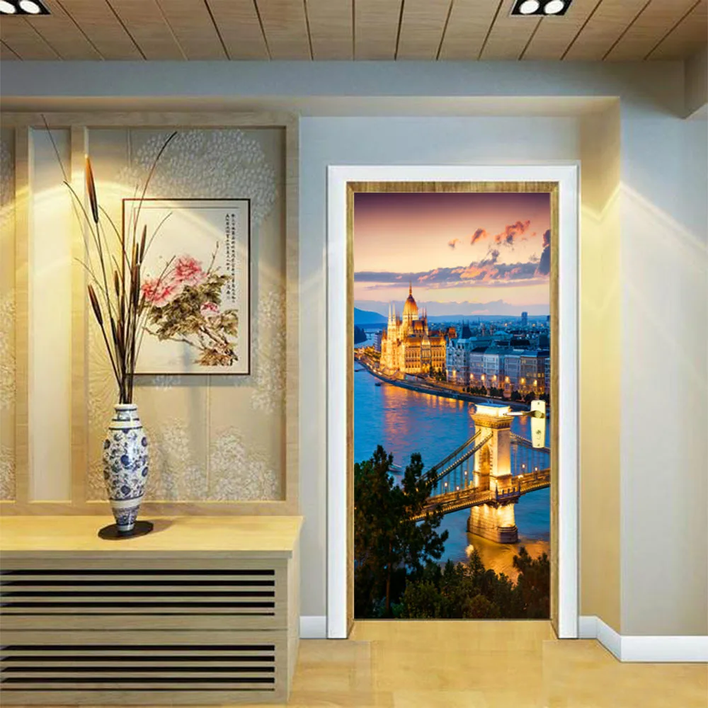 ORIGINAL Castle Bridge Light Night Nightscape Door Sticker Bathroom Toilet Door Decals Diy Waterproof Wall A