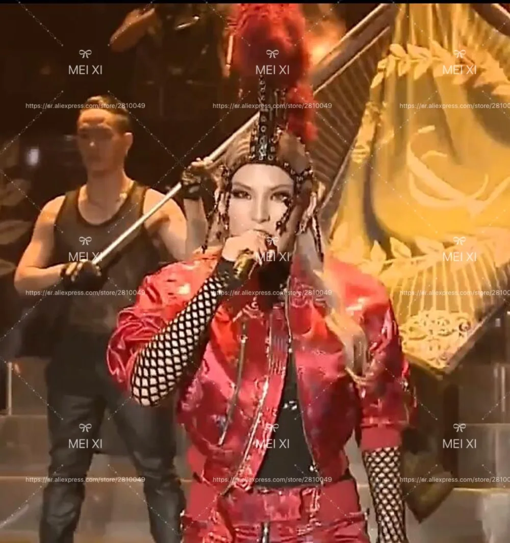 HIGH QUALITY Night club DS male singer DJ Chinese style Spring Festival gala red dragon gown performance suit